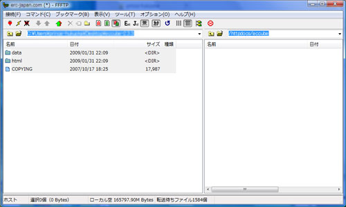 2解凍をしFTPソフトでデータをアップロードします。