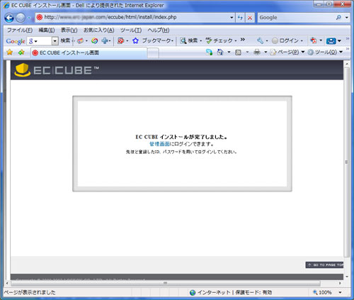 11.インストールが完了しました。管理画面をクリックし、管理画面にログインします。