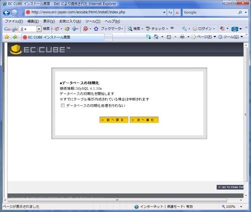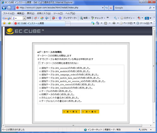 9.データベースの初期化が完了しました【次へ進む】をクリックします。