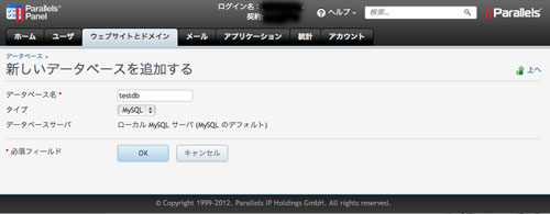 5.【データベース名】を半角英数字で入力しOKをクリックします。