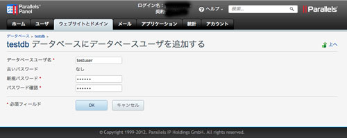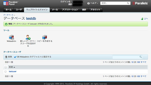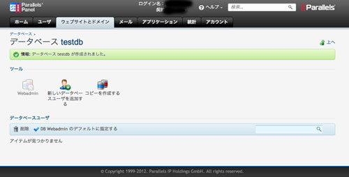 6.データベースの作成されました。続いて新しい【データベースユーザを追加する】をクリックします。