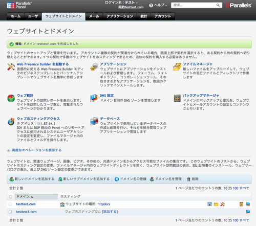 ドメインの作成が完了しました。【DNS設定】をクリックします。