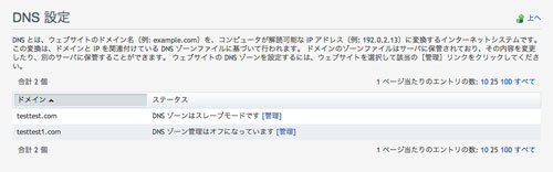 作成したドメインのDNSゾーンの【管理】をクリックします。