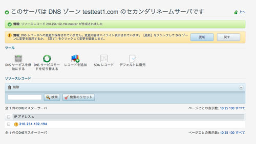 DNSレコードのIPアドレスにメインのサーバーのIPアドレスを入力します。
