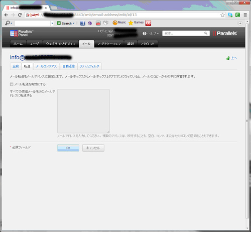 【すべての受信メールを次のメールアドレスに転送する】へ転送したいアドレスを入力し、【OK】をクリックして下さい。