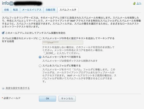 迷惑メールを拒否するスパムフィルタをメールアドレス毎に設定します。