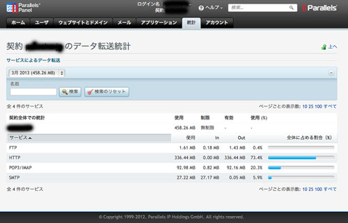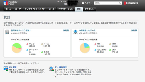3.使用済みディスク領域、今月転送したデータや過去の転送状況が閲覧可能です